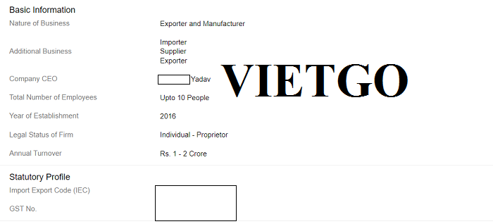 Vừa qua, ông Yadav, Giám đốc công ty ██████████ đã liên hệ với VIETGO trao đổi về nhu cầu tìm nhà cung cấp cho đơn hàng nhập khẩu bột đá vôi của mình. Vị khách hàng đang rất nóng lòng nhận được liên hệ và báo giá từ nhà cung cấp để có thể thực hiện đơn hàng trong thời gian sớm nhất.