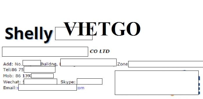VIETGO xin gửi tới Quý nhà cung cấp thông tin chi tiết cũng như đề xuất cụ thể về đơn hàng của bà Shelly – vị thương nhân đến từ Trung Quốc.
