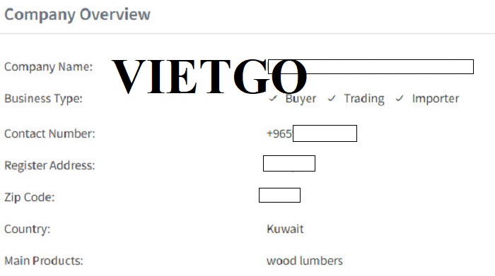 Vừa qua, ông ██████████Hallal – Đại diện công ty ██████████ tại Kuwait đã liên hệ với VIETGO bày tỏ mong muốn nhập khẩu sản phẩm gỗ sồi xẻ với số lượng lớn và hy vọng sẽ hợp tác lâu dài với Quý nhà cung cấp.