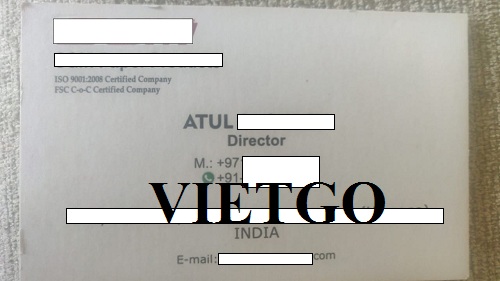 Vừa qua, ông Atul, vị khách hàng người Ấn Độ, đã chủ động liên hệ với VIETGO về đơn hàng xuất khẩu cốc giấy tới thị trường UAE. Ông Atul hiện là Giám đốc của ██████████, một công ty thương mại quốc tế tập trung kinh doanh các loại văn phòng phẩm chất lượng cao.