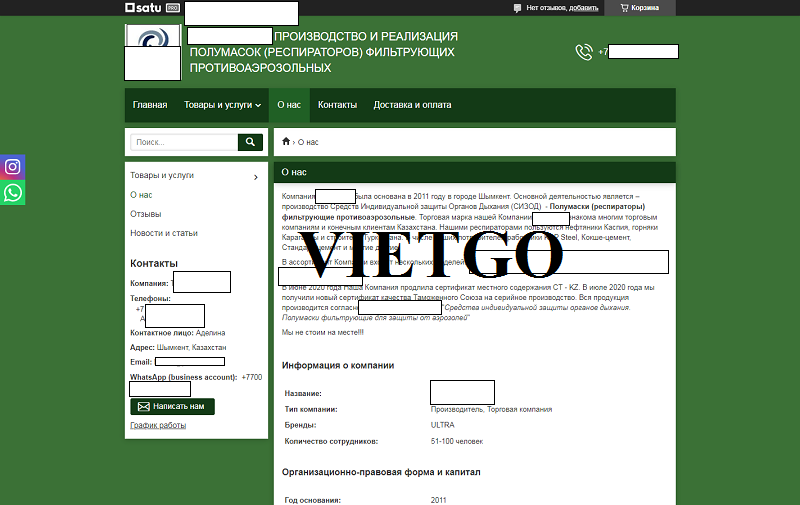 Được biết ██████████ – công ty của bà Urymbayeva chuyên kinh doanh các sản phẩm mặt nạ chất lượng cao. Công ty được thành lập vào năm 2011 và hiện công ty đang có trụ sở chính đặt tại thành phố Shymkent, Kazakhstan. Hoạt động chính của chúng tôi là sản xuất thiết bị bảo vệ cho sự hô hấp như mặt nạ, khẩu trang. Các ản phẩm của công ty đều là kết quả của sự nghiên cứu kỹ lưỡng đến từ đội ngũ chuyên gia của công ty. Không chỉ có tác dụng trong việc bảo vệ các cơ quan hô hấp trước sự tấn công của các loại virus, vi khuẩn trong sinh hoạt hàng ngày mà còn có thể bao vệ người lao động khi phải tiếp xúc với các chất hóa học độc hại. Thương hiệu của công ty - ████████████████████được các công ty thương mại của Kazakhstan và các khách hàng bán lẻ biết đến. Đặc biệt, mặt nạ phòng độc của công ty được sử dụng bởi công nhân trong ngành khai thác mỏ và dầu mỏ, cũng như ngành xây dựng. Trong số những khách hàng thường xuyên của công ty có Kokshe-Cement, Standard Cement, KSP Steel và nhiều công ty khác.