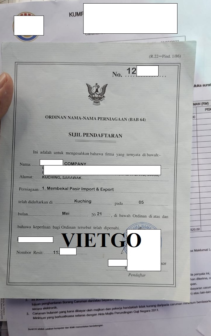 Hình ảnh giấy đăng ký kinh doanh của công ty