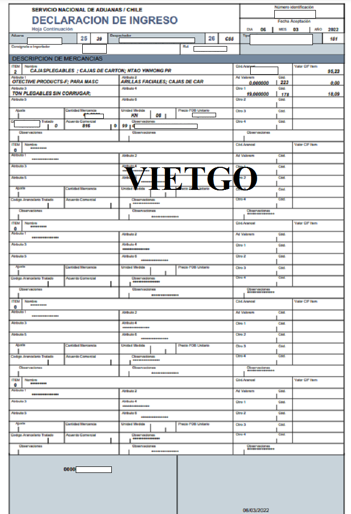 Hình ảnh tờ khai hải quan nhập khẩu sản phẩm khẩu trang từ thị trường Trung Quốc vào ngày 31/12/2021 do vị khách hàng cung cấp