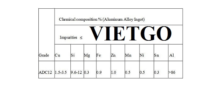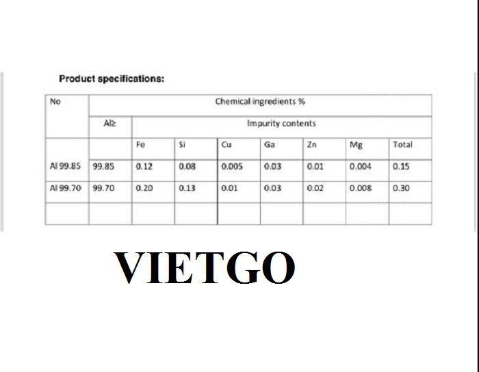 Ông Kobe – vị khách hàng đến từ Đài Loan vừa qua đã liên hệ với VIETGO, trao đổi về mong muốn được tìm kiếm nhà cung cấp cho đơn hàng nhập khẩu hàng tháng 2000 tấn thỏi nhôm A7 và ADC12 của mình. Vị khách hàng đã gửi yêu cầu chi tiết về sản phẩm và đang rất nóng lòng nhận được báo giá từ nhà cung cấp để có thể thực hiện đơn hàng trong thời gian sớm nhất.