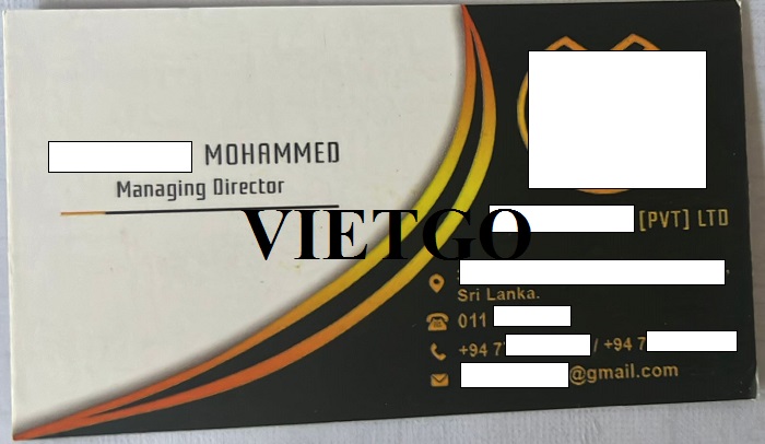 Qua quá trình trao đổi về đơn hàng, VIETGO nhận thấy ông Mohammed là một vị khách hàng tiềm năng, hứa hẹn sẽ mang lại cơ hội hợp tác tốt đẹp cho các nhà cung cấp. Vì vậy, Quý nhà cung cấp nào có thể đáp ứng cho đơn hàng của ông Mohammed, vui lòng liên hệ với vị khách hàng theo thông tin liên hệ được cung cấp dưới đây.