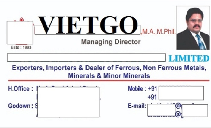 Mọi thông tin Quý vị vui lòng liên hệ qua địa chỉ dưới đây cho ông Lokeshwar để nhanh chóng báo giá và xuất khẩu thành công đơn hàng hấp dẫn này.