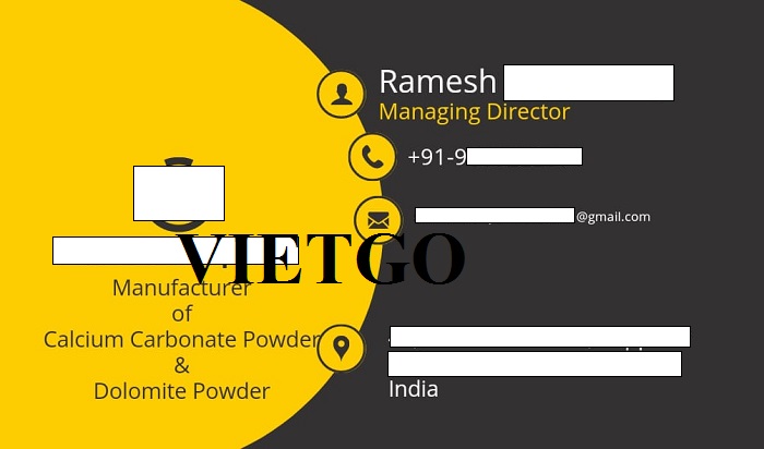 Trao đổi với VIETGO, ông Ramesh cho biết: “Công ty chúng tôi hiện đang muốn nhập khẩu số lượng lớn bột đá vôi để phục vụ hoạt động sản xuất của công ty. Chúng tôi tin tưởng nguồn nguyên liệu của Việt Nam có chất lượng cao và các nhà cung cấp của Việt Nam cũng là những bạn hàng đáng tin cậy. Với đơn hàng hợp tác cùng VIETGO lần này, tôi hy vọng sẽ sớm nhận được báo giá từ phía nhà cung cấp để hai bên có thể nhanh chóng tiến tới một mối quan hệ hợp tác lâu dài và bền chặt”.