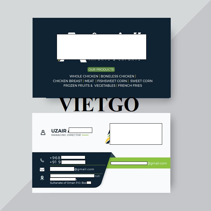 Vừa qua, VIETGO đã nhận được một lời đề nghị báo giá từ ông Uzair - đại diện của công ty ██████████ Imports & Exports - về đơn hàng nhập khẩu gà đông lạnh tới thị trường Oman.