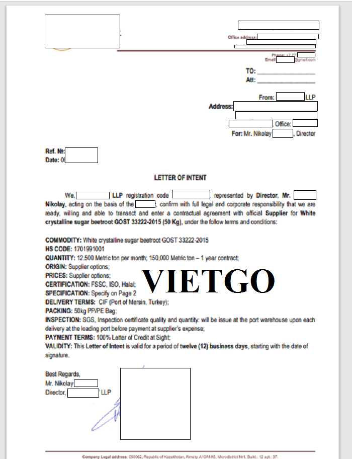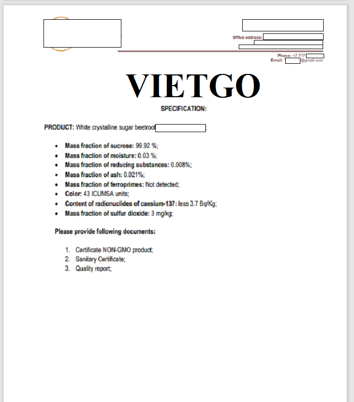 Vừa qua, VIETGO đã nhận được thông tin từ ông Nikolay, một vị khách hàng đến từ Kazakhstan, về một đơn hàng nhập khẩu đường sang thị trường Thổ Nhĩ Kỳ.