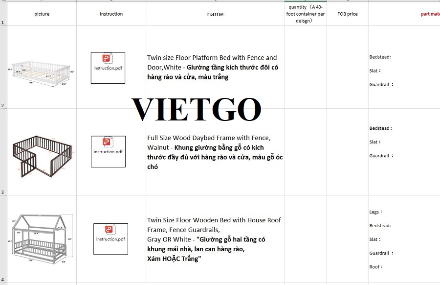 Chia sẻ về đơn hàng hiện tại, ông Li Huan cần nhập khẩu sản phẩm giường gỗ để phục vụ dự án kinh doanh sắp tới. Ông đã liên hệ cũng như trao đổi với Vietgo về đơn hàng giường gỗ và rất mong sẽ nhận được báo giá sớm từ phía Nhà cung cấp. Qua cuộc trò chuyện cũng như trao đổi kỹ lưỡng về đơn hàng, Vietgo nhận thấy ông Li Huan là một vị khách rất tiềm năng và là cơ hội lớn để hợp tác lâu dài với các Nhà cung cấp châu Á. Vậy nên, Quý nhà cung cấp nào có thể đáp ứng được yêu cầu của vị khách hàng thân thiện này, vui lòng liên hệ và gửi báo giá cho ông qua trong thời gian sớm nhất có thể qua địa chỉ email dưới đây.
