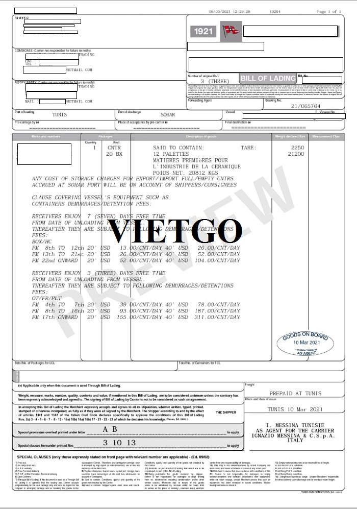 ██████████ Trading đã nhập khẩu thành công nhiều sản phẩm từ nước ngoài. Dưới đây là hình ảnh vận đơn nhập khẩu sản phẩm dăm bào vị khách hàng thực hiện từ Tunisia đến Oman ngày 20/03/2021.