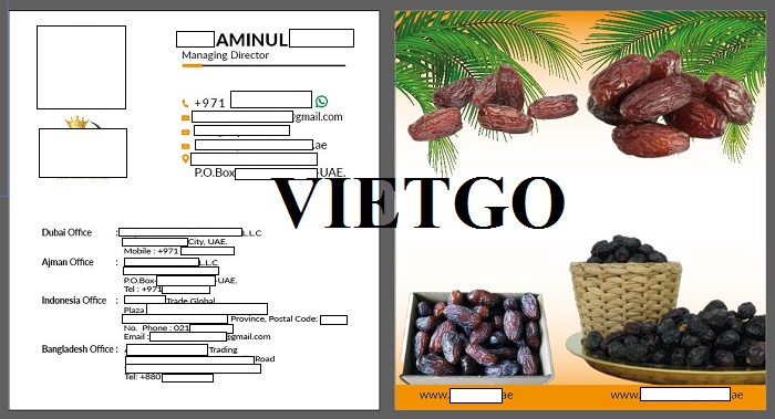 Ông Aminul – Vị khách hàng của VIETGO lần này hiện đang nắm giữ chức vụ Giám đốc điều hành của chuỗi công ty kinh doanh các sản phẩm về các sản phẩm nông sản, hoa quả sấy khô có các trụ sở đặt tại Dubai, Ajman, Indonesia và Bangladesh. Liên hệ với VIETGO lần này, vị khách hàng đại diện cho công ██████████ LLC có trụ sở chính tại Dubai để tìm kiếm nhà cung cấp sản phẩm dừa. Hiện ông đang có nhu cầu tìm kiếm nhà cung cấp uy tín để có thể tiến hành đơn hàng nhập khẩu thường xuyên sang UAE, Bangladesh, Ả-rập Xê-út và có thiện chí muốn hợp tác lâu dài với công ty trong những đơn hàng nhập khẩu tiếp theo.