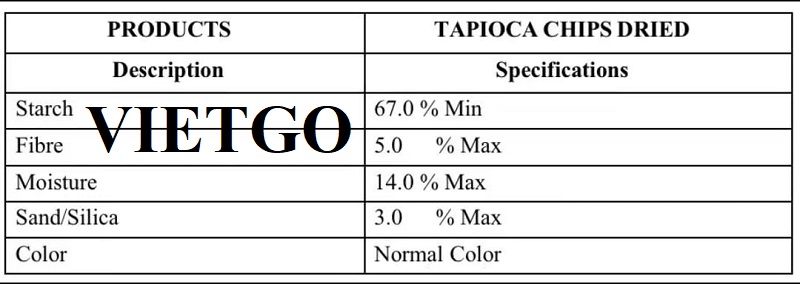 VIETGO vừa nhận được liên hệ từ ông Doni, vị khách hàng đến từ Indonesia về đơn hàng sắn lát. Ông Doni hiện có nhu cầu nhập khẩu sản phẩm này cho đối tác kinh doanh của công ty ở thị trường Trung Quốc. Chính vì thế ông đã liên hệ với VIETGO về đơn hàng này và rất mong sớm nhận được phản hồi từ Quý doanh nghiệp.