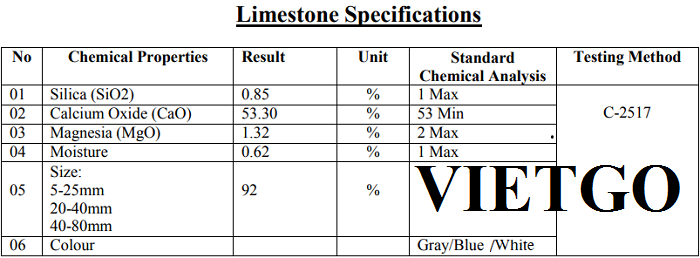 VIETGO xin gửi tới Quý nhà cung cấp thông tin đơn hàng nhập khẩu đá vôi đến từ vị khách hàng tiềm năng, ông Rashid.