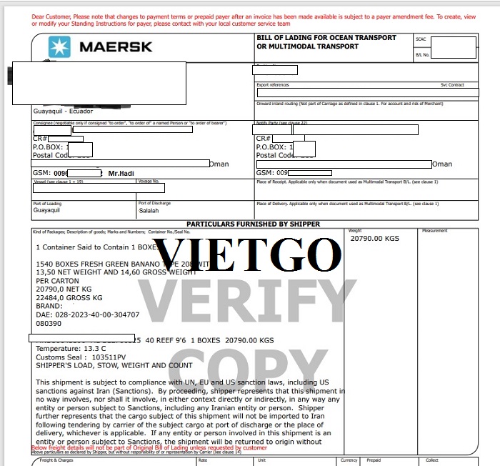 Hình ảnh một số bản vận đơn vị khách hàng nhập khẩu thành công trước đó