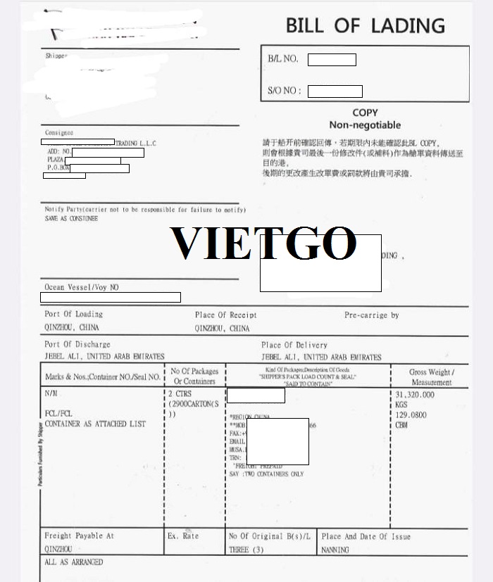 Dưới đây là bản vận đơn nhập khẩu của công ty vị khách hàng sản phẩm quế và hồi từ Trung Quốc vào năm 2023.