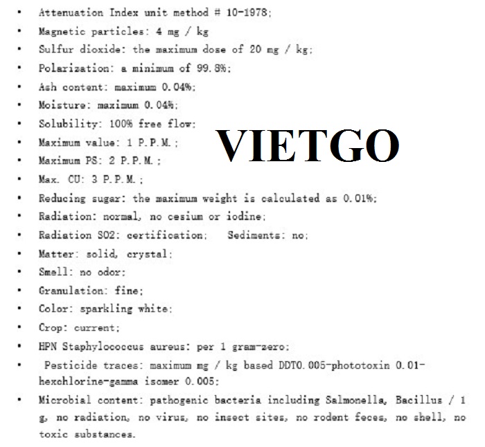 Ông Yang – Nguời đại diện cho công ty ██████████ Food Trading Co., LTD, đã bày tỏ mong muốn tìm kiếm nhà cung sản phẩm đường qua việc liên hệ với VIETGO. Công ty ██████████ Food Trading Co., LTD được thành lập tại thành phố Tô Châu, tỉnh Giang Tô – Nằm trong danh sách 10 thành phố có quy mô xuất nhập khẩu hàng đầu Trung Quốc. Để bắt kịp xu hướng xuất nhập khẩu mạnh mẽ tại thành phố của mình, ông Yang cũng chia sẻ thêm rằng ██████████ Food Trading Co., LTD rất hy vọng có thể hợp tác kinh doanh với những nhà cung cấp uy tín cho sản phẩm đường. Là một dạng đường được tinh chế cao nhất, có màu trắng lấp lánh, và thường được bán trực tiếp cho người tiêu dùng, đường Icumsa-45 chính là sản phẩm mà ông và Quý công ty mong muốn nhập khẩu lần này.