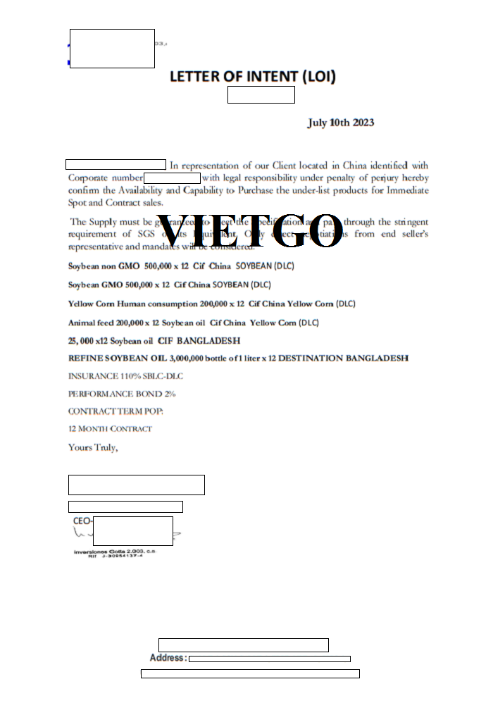 Công ty vị khách hàng luôn tìm kiếm những sản phẩm chất lượng cao và giá cả tốt. Hiện tại công ty đang hoạt động chính trong các ngành hàng như thiết bị, vật liệu xây dựng như xẻng cơ khí, máy xúc lật, các loại máy móc cùng với các bộ phận và hàng hóa cho ngành xây dựng; lắp đặt, sửa chữa, bảo trì các thiết bị điện và tham gia chuỗi cung ứng trong ngành hàng nông sản. Hiện tại vị khách hàng đang quan tâm đến sản phẩm dầu đậu nành. Vì vậy ông Angello đã đại diện cho công ty liên hệ với VIETGO để tìm kiếm và kết nối với các nhà cung cấp uy tín của sản phẩm này.