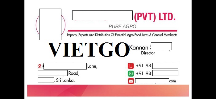 Vừa qua, ông Kannan, Giám đốc của công ty ██████████ và ██████████ (PVT) LTD. và VIETGO đã có cuộc trao đổi ngắn gọn về đơn hàng nhập khẩu bún khô và phở khô. Liên hệ với VIETGO lần này, ông Kannan hy vọng có thể tìm được nhà cung cấp ưng ý cho nhu cầu nhập khẩu của mình.