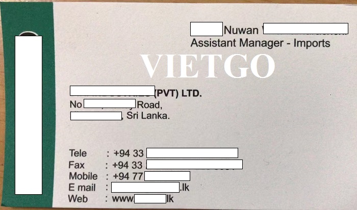 Qua trò chuyện, VIETGO đánh giá cao thiện chí hợp tác của ông Nuwan với nhà cung cấp tại khu vực châu Á. Quý nhà cung cấp nào có thể đáp ứng được nhu cầu của vị khách hàng tiềm năng này vui lòng liên hệ và gửi báo giá cho ông trong thời gian sớm nhất như thông tin liên hệ sau đây: