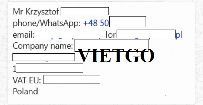 Ông Krzysztof ██████████ hiện đang đảm nhận vị trí Giám đốc điều hành tại công ty ██████████. với văn phòng chính được đặt tại tỉnh Podlaskie, Ba Lan. Liên hệ trực tiếp cùng VIETGO, ông Krzysztof có đề xuất một đơn hàng nhập khẩu sản phẩm hạt tiêu với số lượng 50 tấn và chuyến hàng sẽ được thực hiện hàng tháng nếu giá thành đạt đươc mục tiêu ông đề ra. Đơn hàng lần này được thực hiện nhằm mục đích phục vụ cho hoạt động kinh doanh của công ty.