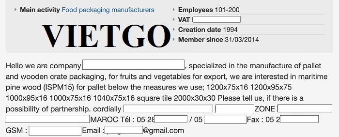 VIETGO xin gửi tới Quý nhà cung cấp thông tin về đơn hàng pallet gỗ từ vị khách tiềm năng, ông Abdelkader.