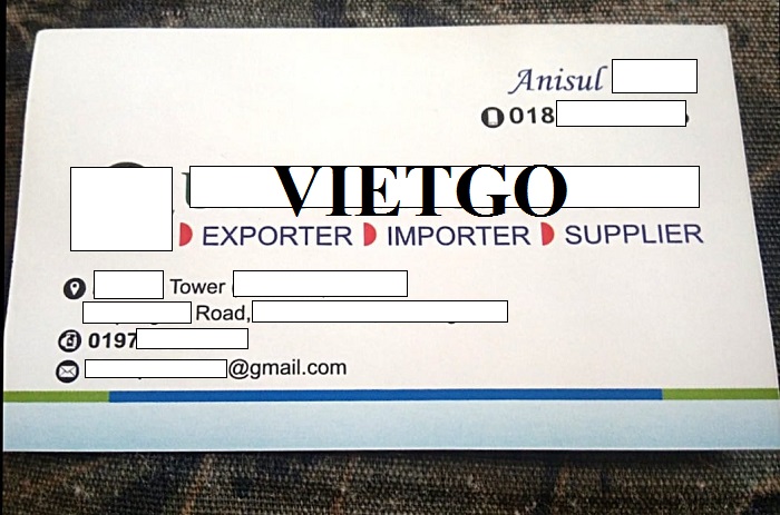 VIETGO xin gửi tới các Quý nhà cung cấp thông tin về nhu cầu nhập khẩu sản phẩm nghệ khô từ một đại diện đến từ Bangladesh – ông Anisul.