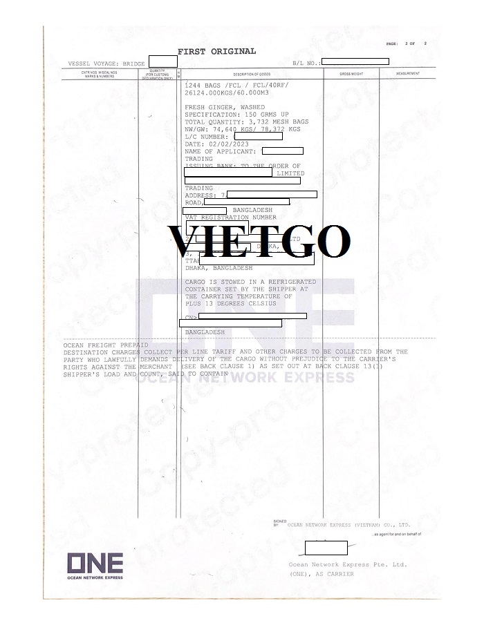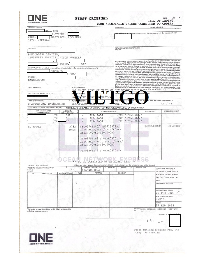 Dưới đây là bản vận đơn nhập khẩu túi từ Việt Nam năm 2023 do vị khách hàng thực hiện thành công: