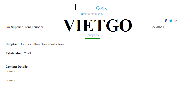 Vị khách hàng chia sẻ: “Xin chào, tôi tên là Pablo đến từ Ecuador. Hiện tôi đang kinh doanh một công ty thương mại hàng hóa có tên là ██████████. Tôi nhận được một số nhu cầu đối với sản phẩm sợi may mặc và đang tìm kiếm nhà cung cấp phù hợp để hợp tác. Rất mong nhân được báo giá cạnh tranh từ các bạn cho đơn hàng đầu tiên này.” Công ty của vị khách hàng vừa được thành lập vào năm 2021, có quy mô nhỏ và hoạt động tư nhân. Mạng lưới khách hàng chính của công ty đến từ Ecuador và mặt hàng chính công ty kinh doanh là các sản phẩm may mặc như sợi, vải, các loại trang phục may sẵn. Bên cạnh đó, ông Pablo cũng kinh doanh các sản phẩm thiết bị điện tử khác.