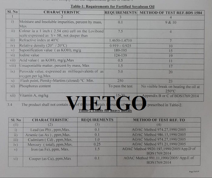 Yêu cầu: Dầu đậu nành có chất lượng tốt, màu vàng nhạt, không có tạp chất và không có mùi lạ