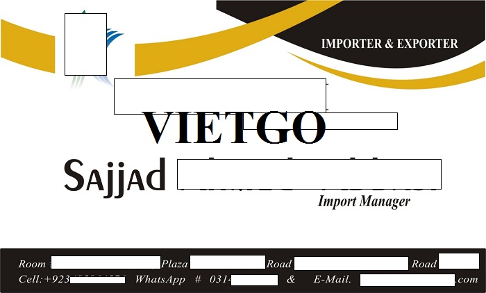 Với những chia sẻ trên, ông Sajjad rất mong muốn nhận được phản hồi về mức giá cạnh tranh từ phía nhà cung cấp của VIETGO. Vậy, Quý nhà cung cấp nào quan tâm đến đơn hàng nhập khẩu của vị khách hàng, vui lòng liên hệ và báo giá với ông theo địa chỉ thông tin liên lạc dưới đây: