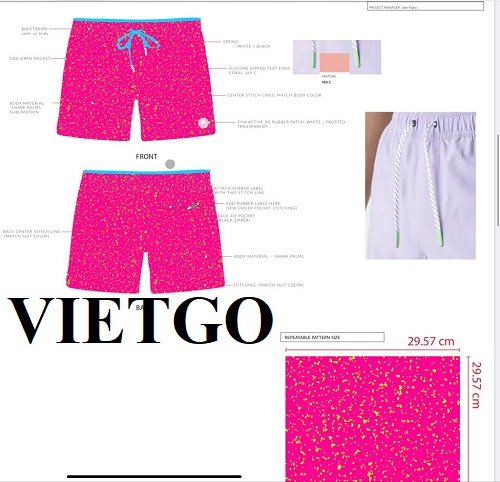 VIETGO xin gửi tới Quý vị thông tin đơn hàng nhập khẩu quần bơi của ông Paskett – vị khách hàng đến từ Hoa Kỳ.