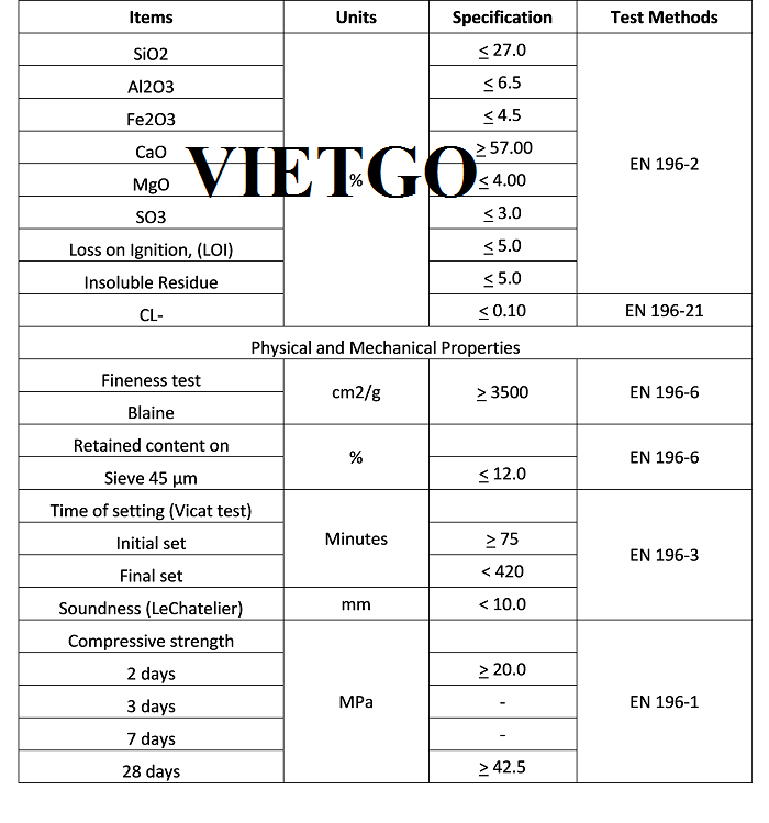 Số lượng: 500,000 bao 42.5kg hoặc 50kg (tương đương 21,250 đến 25,000 tấn) cho lần nhập thử