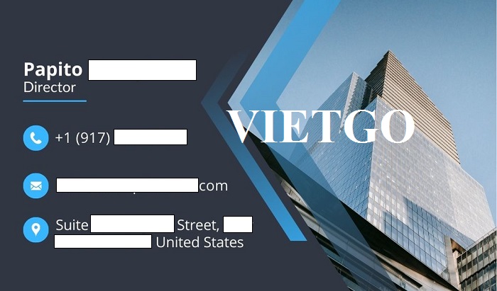 Ông Papito cho biết: “██████████ INC. đã có trên 22 năm hạt động trong lĩnh vực kinh doanh thương mại nội địa và quốc tế. Công ty chúng tôi hiện có duy nhất trụ sở tại thành phố New York, Mỹ. Các sản phẩm chúng tôi đang kinh doanh thương mại bao gồm đường, gạo, đậu, xi măng, v.v. Ngoài ra, chúng tôi cũng giúp khách hàng của mình tìm nhà cung cấp cho bất cứ sản phẩm nào họ cần. Với đơn hàng lần này, khách hàng của chúng tôi đang muốn tìm kiếm nhà cung cấp để nhập khẩu 500,000 bao xi măng Portland loại I mác 42.5R tới Haiti. Tôi hy vọng sẽ sớm nhận được báo giá từ các nhà cung cấp của VIETGO để chúng ta có thể nhanh chóng tiến tới hợp tác”.