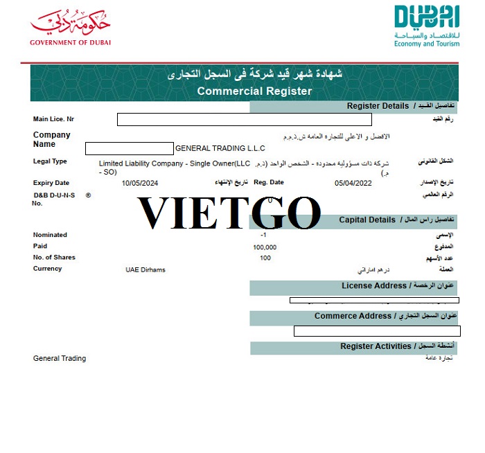 Địa chỉ công ty: ██████████ ██████████ Market, Dubai, UAE