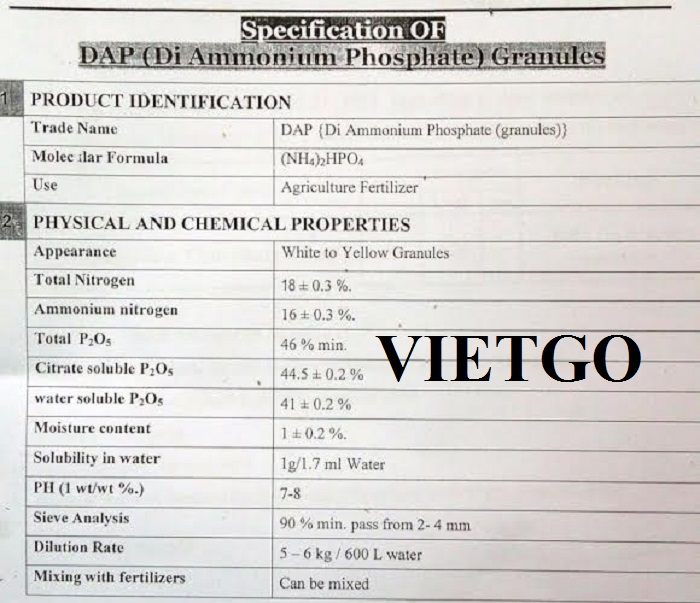 Vừa qua, VIETGO đã nhận được một lời đề nghị báo giá từ ông Amit - đại diện của ██████████ - về đơn hàng nhập khẩu phân bón DAP cho khách hàng của mình tại Bangladesh.