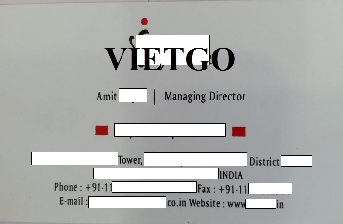 Ông Amit mong muốn sớm nhận được báo giá từ các nhà cung cấp của VIETGO. Bởi vậy, Quý nhà cung cấp nào mong muốn hợp tác cùng vị khách hàng xin vui lòng liên hệ và báo giá cho ông trong thời gian sớm nhất theo thông tin dưới đây: