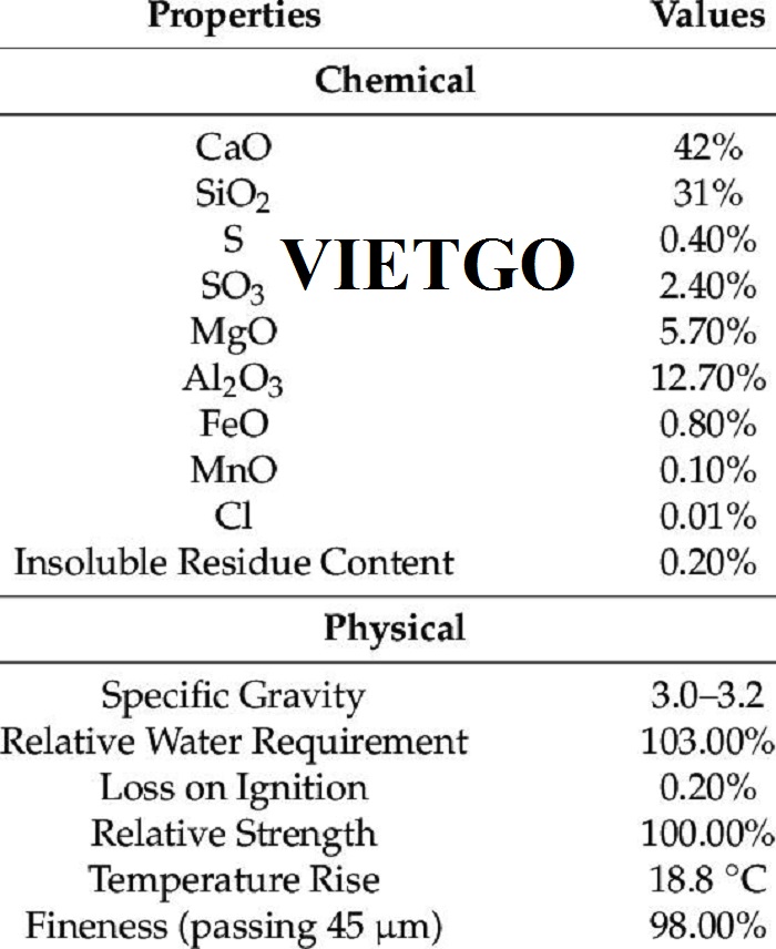 Loại: Xỉ hạt lò cao nghiền mịn (GGBFS)