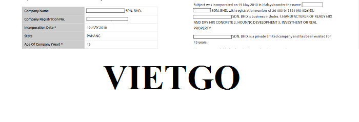 Chia sẻ với VIETGO, ông Chris cho biết: “Chúng tôi, ██████████ Sdn Bhd, đã có trên 13 năm hoạt động trong lĩnh vực cung cấp bê tông tại Malaysia. Hoạt động kinh doanh của chúng tôi bao gồm sản xuất bê tông trộn sẵn và trộn khô, xây dựng nhà ở và dầu tư, bất động sản. Hiện tại, chúng tôi đang muốn tìm kiếm nhà cung cấp 1,000 tấn xỉ hạt lò cao cho lần nhập thử đầu tiên để phục vụ cho công việc kinh doanh của công ty. Hy vọng tôi sẽ nhanh chóng tìm được nhà cung cấp pơhuf hợp thông qua VIETGO để chúng ta có thể tiến hành hợp tác ngay”.
