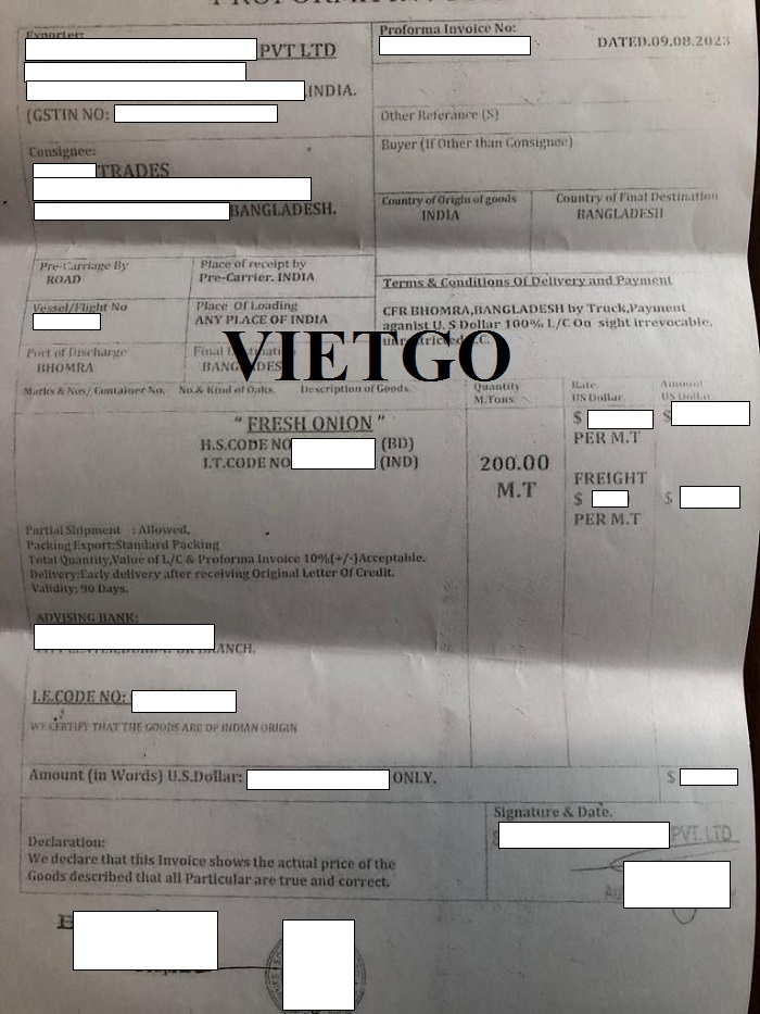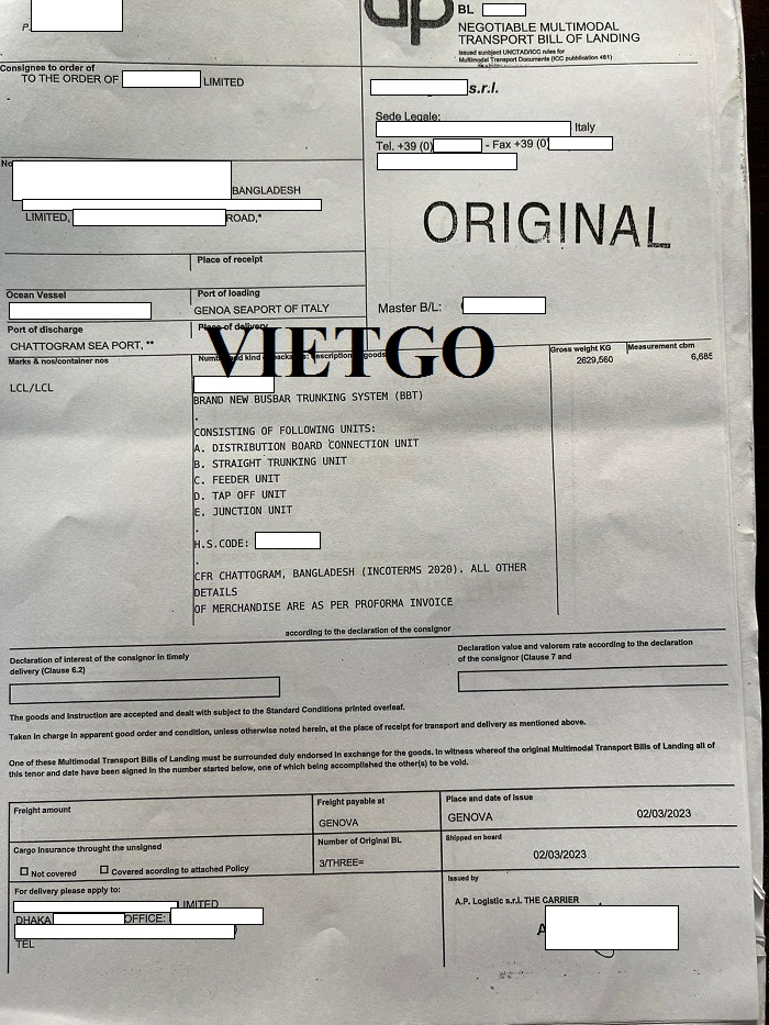 Dưới đây là hình ảnh bản vận đơn của đơn hàng nhập khẩu thanh dẫn điện từ Ý vào ngày 02/03/2023 và hóa đơn của đơn hàng nhập khẩu hành tươi từ Ấn Độ vào ngày 09/08/2023 mà công ty vị khách hàng đã thực hiện thành công: