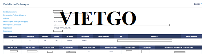 Hình ảnh thông tin chuyến hàng nhập khẩu gỗ dán từ Tây Ban Nha do công ty vị khách hàng thực hiện thành công vào năm 2020
