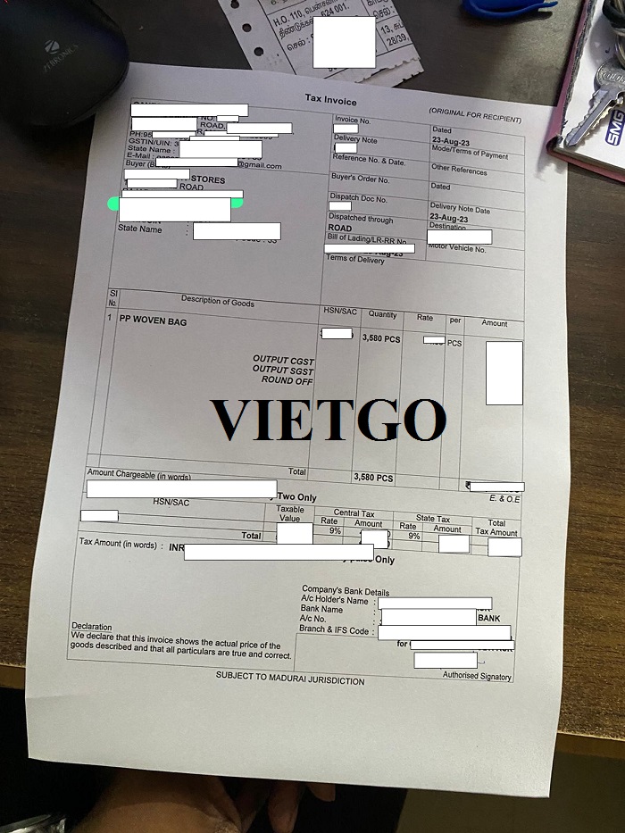 Hình ảnh hóa đơn bán túi PP dệt của công ty vị khách hàng
