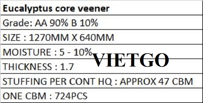 VIETGO xin gửi tới Quý nhà cung cấp thông tin về đơn hàng ván bóc bạch đàn đến từ vị khách hàng tiềm năng, ông Bazaz.