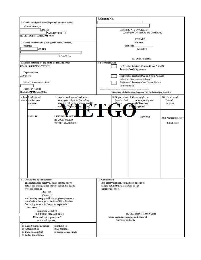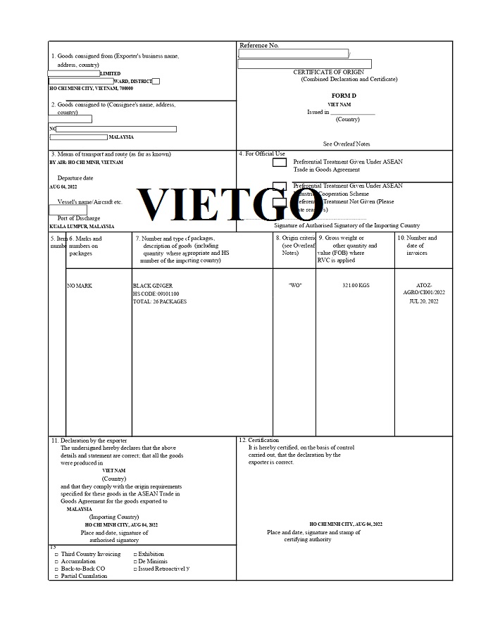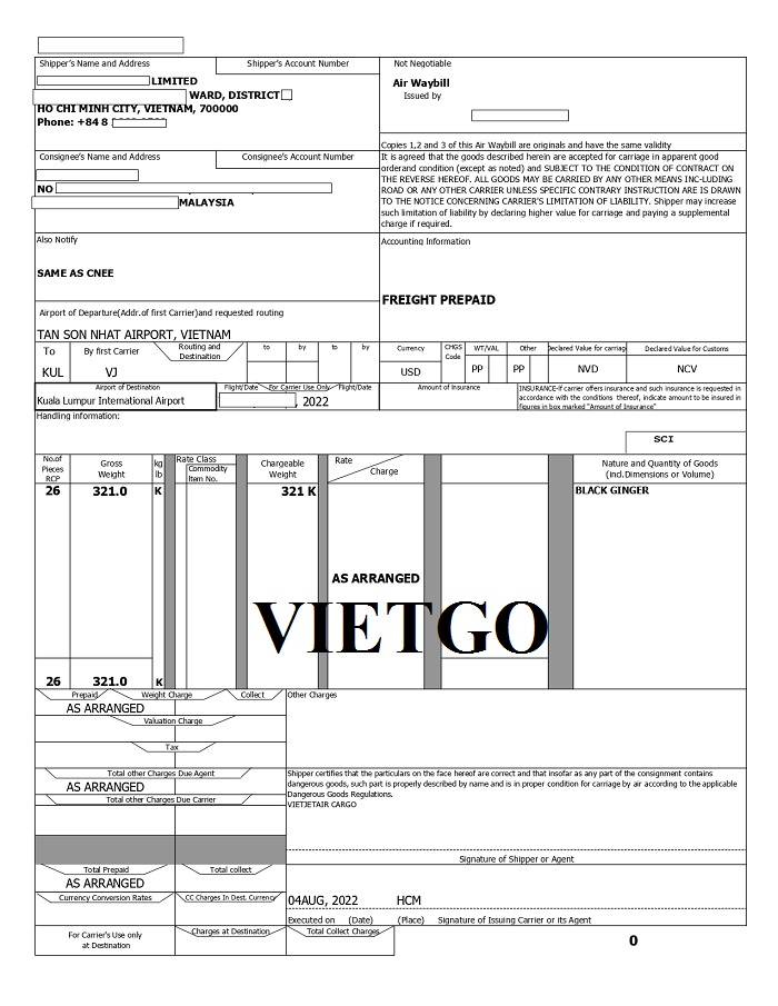 Dưới đây là hình ảnh vận đơn nhập khẩu thành công sản phẩm gừng từ Việt Nam của công ty ông.