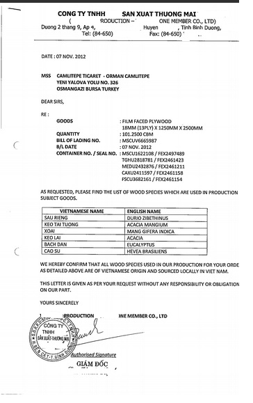 A Turkish importer needs to buy plywood.