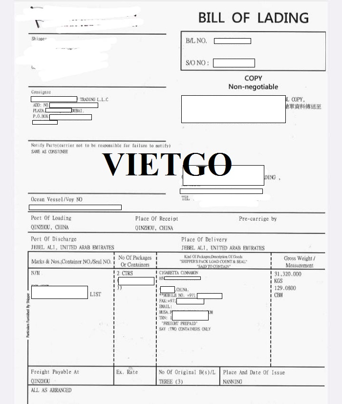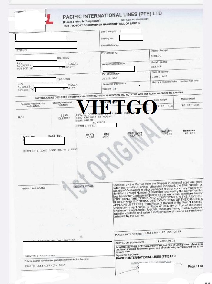 Dưới đây là bản vận đơn nhập khẩu của công ty vị khách hàng sản phẩm quế và hồi từ Trung Quốc vào năm 2023.