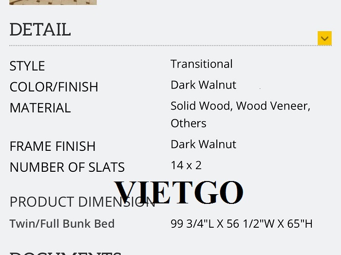 Vừa qua, ông Luis – đại diện công ty ██████████ đã chủ động liên hệ với VIETGO nhằm mục đích nhập khẩu sản phẩm giường tầng để phục vụ cho hoạt động kinh doanh của công ty mình.