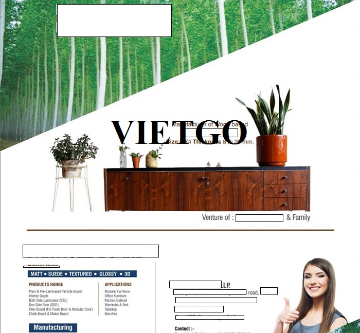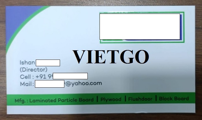 VIETGO xin gửi tới Quý nhà cung cấp thông tin về đơn hàng ván MDF từ vị khách tiềm năng, ông Ishan.