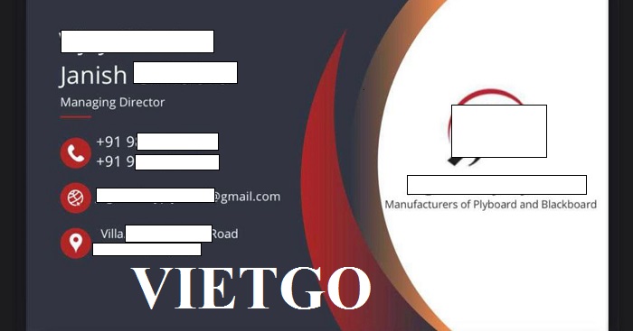 ██████████ Plywood có địa chỉ tại ██████████, Hoshiarpur, Ấn Độ là một công ty sản xuất và kinh doanh xuất nhập khẩu các sản phẩm ván ép như gỗ dán, gỗ ghép thanh,… Do nhu cầu trong nước đang tăng cao, khách hàng cần nguồn hàng lớn nên ông Janish rất mong muốn có thể tìm được các nhà cung cấp ván bóc với chất lượng tốt và giá thành hợp lý để hợp tác lâu dài. Ông đã và đang có nhiều dự án triển vọng, tới đây sẽ hứa hẹn sự hợp tác thành công.