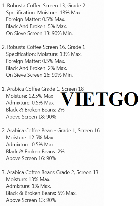 Cà phê có chất lượng cao, không bị ẩm mốc, đảm bảo vệ sinh, đạt tiêu chuẩn xuất khẩu